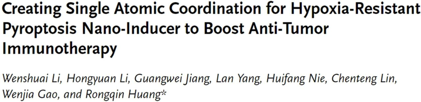 该研究以“Creating Single Atomic Coordination for Hypoxia-Resistant Pyroptosis Nano-Inducer to Boost Anti-Tumor Immunotherapy”为题在线发表于权威期刊Advanced Materials。