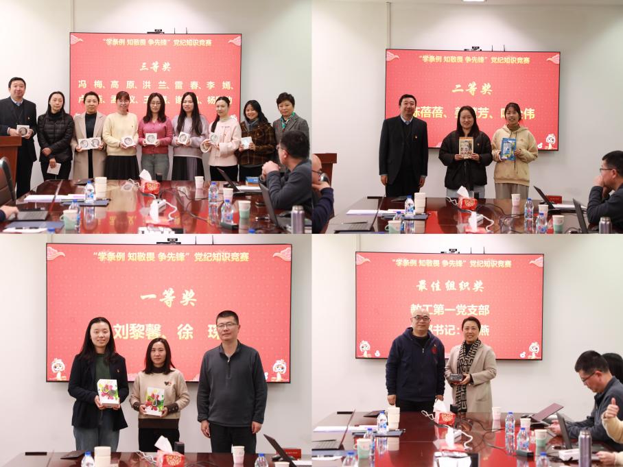 会前,学院党委举行了“学条例 知敬畏 争先锋”党纪知识竞赛颁奖仪式。上学期,为巩固拓展党纪学习教育成果,大力营造遵规守纪的浓厚氛围,学院开展了线上知识竞赛,来自8个教工党支部、近40名党员参加了比赛。李聪、王盛、王洋分别为获奖个人颁奖,王建新为教工一支部颁发了最佳组织奖。此次竞赛是学院推进党纪学习教育走深走实的一项重要举措,通过以赛促学、以学促行,进一步强化了全体党员对《中国共产党纪律处分条例》的理解和认识,筑牢拒腐防变的思想道德防线。