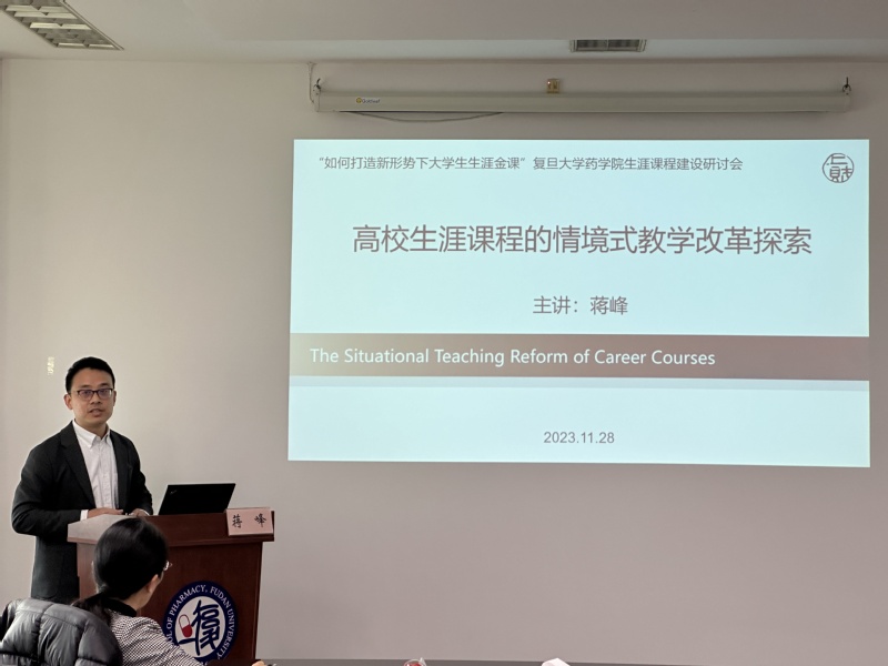 随后,蒋峰老师以“高校生涯课程的情境式教学改革探索”为题进行了主旨发言。他表示新形势下对生涯课程的要求越来越高,并归纳了目前生涯课程存在的共性问题,包括教学目标多注重共性需求、教学过程多强调知识性以及课程评估多为“静态”评价,并对上海财经大学遇到的具体问题进行介绍分析。随后蒋峰老师详细介绍了自己为了解决生涯课程的痛点而开创的情境式教学的情况。情境式教学旨在通过感官体验和情感变化使得同学们产生知识、技能和价值观的转变,在上海财经大学开设的课程中,情境式教学的形式包括生涯情景剧、采访学长学姐对就业的看法、“我的未来名片”等形式。参会老师深受启发,就工作室规模、课程给分标准等问题与蒋峰老师进一步探讨,以考虑将蒋峰老师的经验应用于各自的生涯工作中。