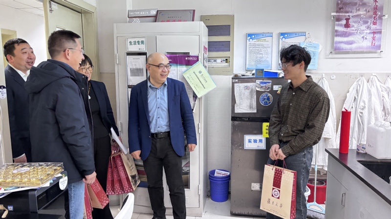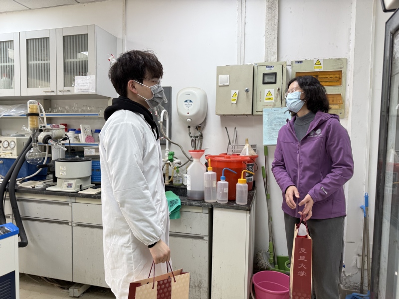 为关心关爱寒假留校学生,营造温暖和谐的校园氛围,1月22日,色情片 党委书记王建新,院长李聪,副院长潘俊、戚建平、周璐,党委副书记史雪茹、王盛一行,先后走访了学院科研楼、化学南楼、化学北楼,慰问关心寒假留校学子,每到一处,老师们都同学们亲切交谈,为同学们送去温暖与祝福。
