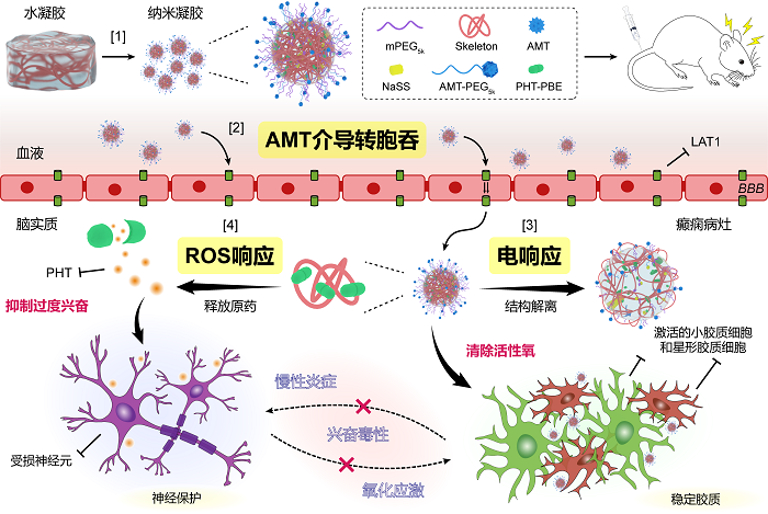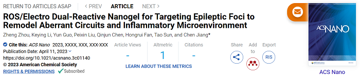 相关研究成果以“ROS/Electro Dual-Reactive Nanogel for Targeting Epileptic Foci to Remodel Aberrant Circuits and Inflammatory Microenvironment”为题,在线发表于《ACS Nano》,DOI为10.1021/acsnano.3c01140。2020级博士研究生周政为第一作者,蒋晨教授为通讯作者。