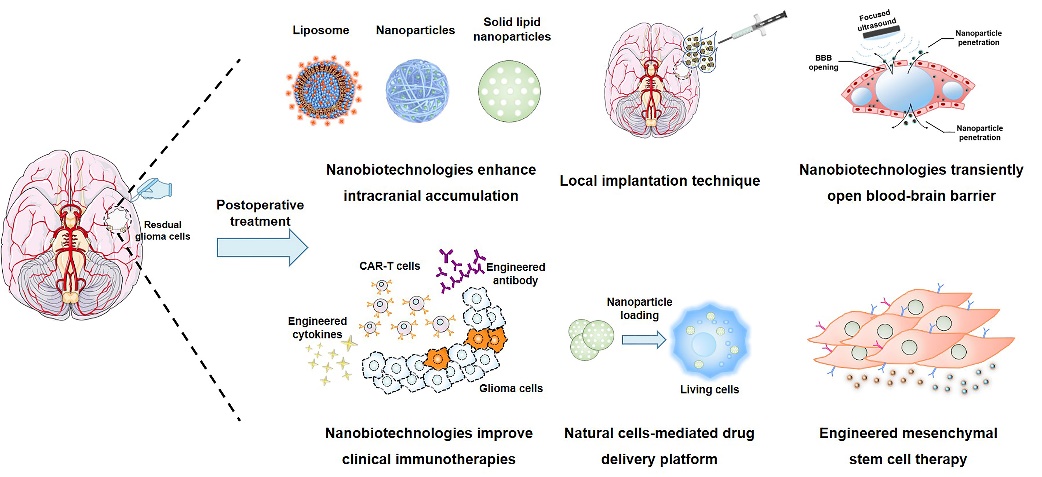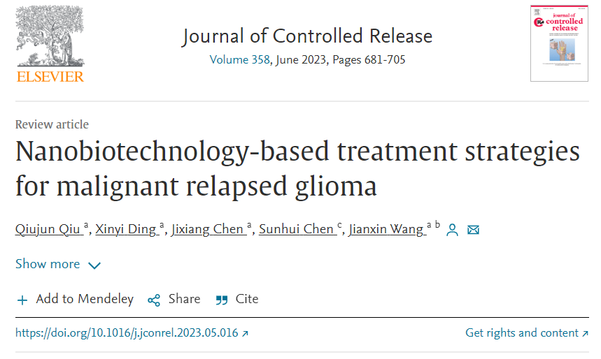 王建新教授团队针对GBM开展了系统性的研究,并于近日在国际控释杂志《Journal of Controlled Release》发表综述,详细介绍了复发性GBM微环境的特征及其治疗与挑战,系统回顾了基于纳米生物学技术的治疗策略,包括局部水凝胶治疗策略、新型免疫疗法和细胞疗法等。