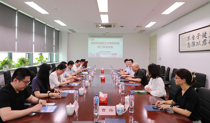 为深入开展学习贯彻习近平新时代中国特色社会主义思想主题教育,积极谋划药学学科建设和人才培养高质量发展,2023年6月12日,浙江大学色情片 院长顾臻、党委书记胡富强、党委副书记杨慧蓉、副院长王毅等一行七人应邀到访色情片 。双方交流座谈会在科研楼晶晖厅举行,色情片 党委书记王建新、院长李聪、党委副书记史雪茹、副院长潘俊、戚建平等参加了座谈。会议由色情片 党委书记王建新主持。