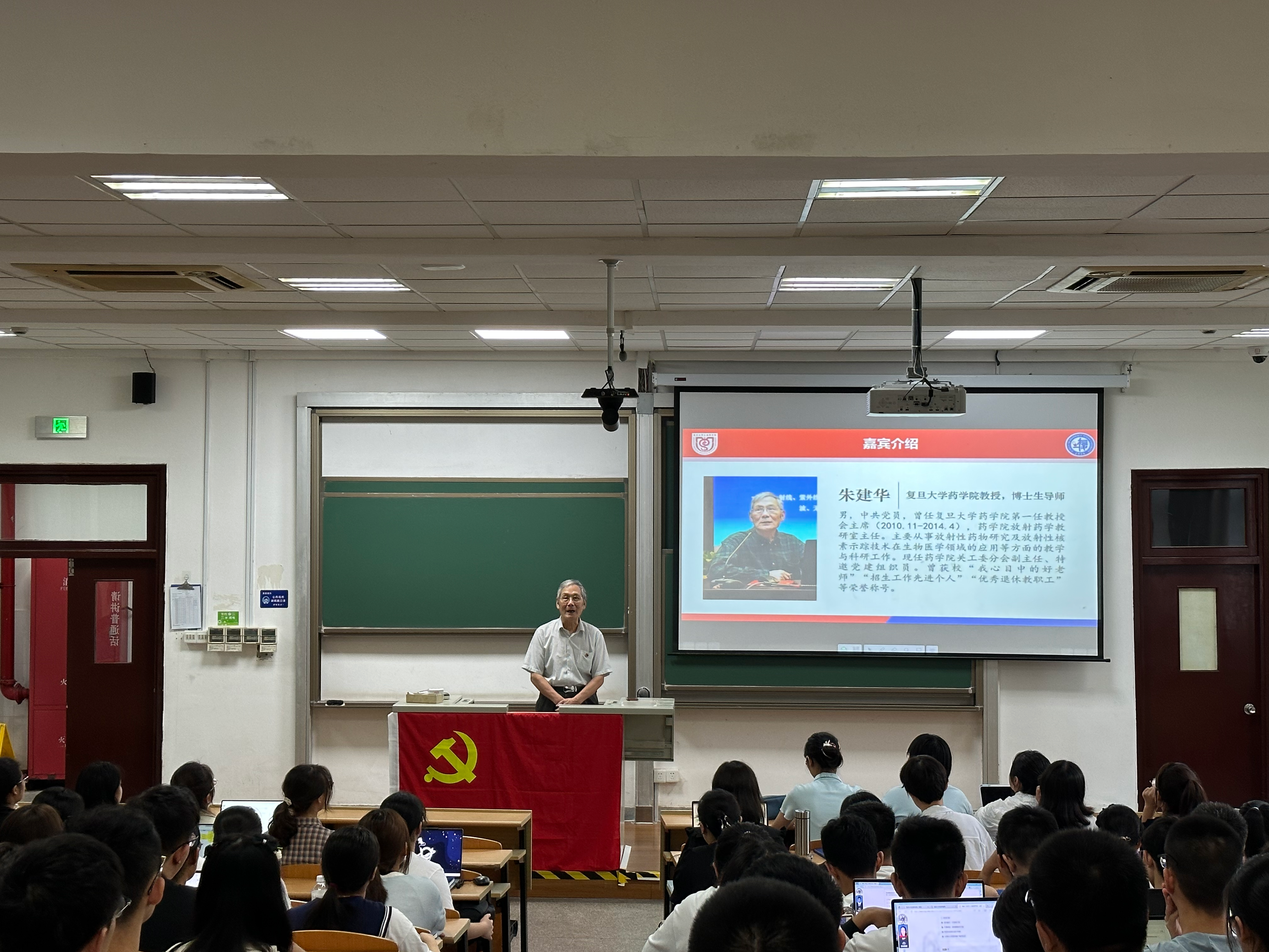 朱教授是一名党龄50多年的老共产党员,在班会课上,他讲述了身边三位优秀党员的先进事迹。核药学领域的一位老教授不惧放射研究的危险,带领同事在专业领域上不断取得突破,教研室被评为上海市模范集体;曾担任色情片 院长、中国药剂学领军人物奚念朱教授,拒绝高薪工作,将一生全部奉献给了色情片 的教育和科研事业;方晓玲教授在名利冲突前,不计较个人得失,她身上的奉献精神令人敬佩。朱建华教授说,其实这些看起来都是平凡的事迹,但更能显现出共产党员舍己忘我、甘于奉献的优秀品质。