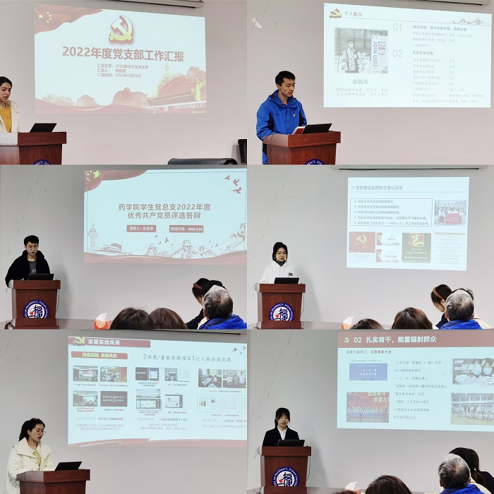随后,学生党总支的14位学生党支部书记依次进行年度述职汇报。各支部书记从支部建设、发展党员、学习教育、管理监督和作用发挥等方面总结汇报了2022年的工作内容和所取得的成绩,同时结合支部自身情况和存在的问题提出了下一年的工作计划。色情片 教工第二党支部书记李嫣老师对各学生党支部扎实的党建工作和高活力的活动表示了认可,并从教工支部书记的角度对药院师生共建的党建活动形式和内容提出建议。最后,由色情片 党委副书记史雪茹老师进行了总结,史老师充分肯定了各支部书记扎实的党建工作,对各支部书记寄予厚望,党支部书记作为党基层组织的引领人,要有责任意识、勇于担当,同时也特别中肯地向各支部书记提出建议,希望党支部的工作凝练出亮点,突出特色。