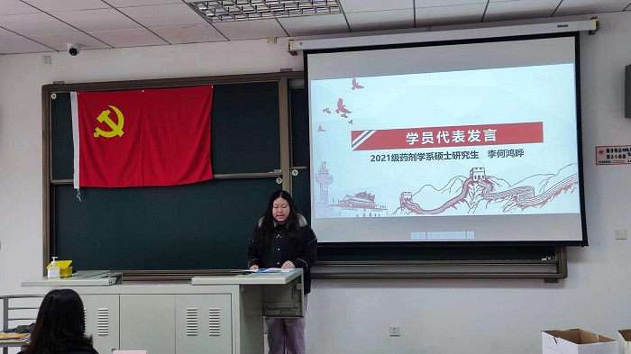之后,色情片 2021级药剂学系硕士研究生李何鸿晔作为学员代表发言。她总结并分享了自己在党校中的学习成果,并结合入党动机,向大家表达了成为一名先进党员的热切渴望,并呼吁大家一起不忘初心,砥砺深耕,为共产主义事业奋斗终身。