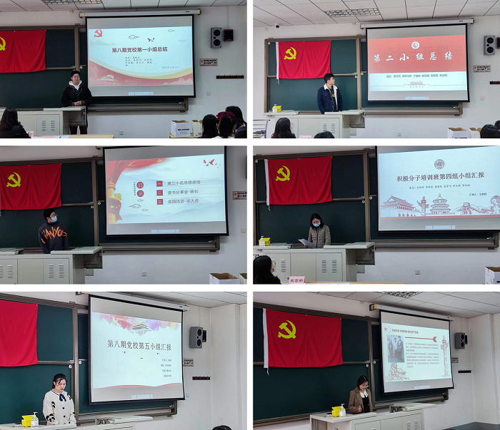仪式在响亮的国歌中开始。首先,各小组学员依次上台展示在培训班期间的所学所思所感。在人物访谈中,小组成员采访了深耕药学各领域的老师,老师们分享各自的学习经历及对药学领域十年发展的见解和展望,拓宽了小组成员们对药学学科的认识。在读书分享会活动中,各小组成员介绍了自己阅读过的经典书籍,如《实践论》《中国共产党简史》《激荡三十年》等,大家在书本知识中加深了对党史的理解。最后,小组成员向大家分享了自己在此次培训中的感想与收获,尤其是对于如何成为一名优秀的共产党员的理解,同学们表示党校的课程安排、实践锻炼、交流访谈让大家收获颇丰。