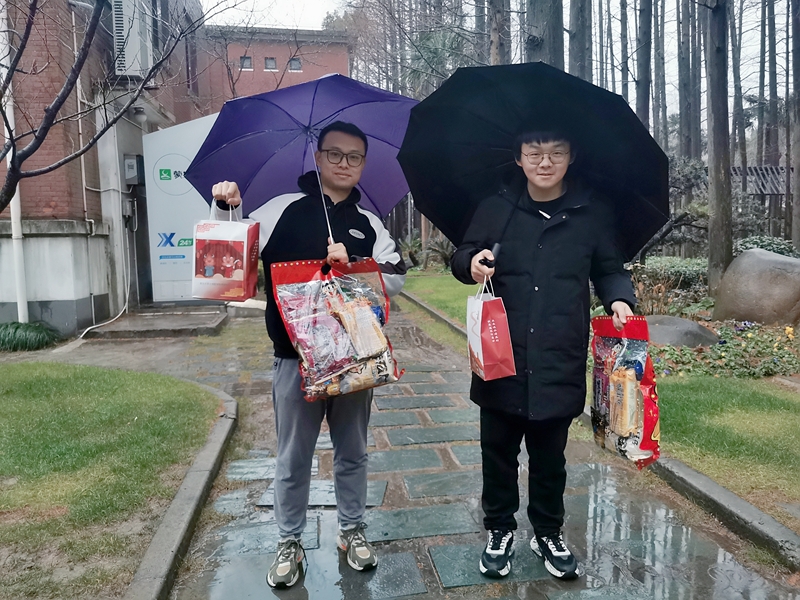 此外,学院学工组老师们也专门赶往邯郸校区和枫林校区,为分校区留校同学送上祝福和慰问。同时,色情片 研究生会专门成立假期临时后勤保障组提供新春礼包补领递送服务,让错过了走访慰问的同学也能接收到来自学院的温暖。